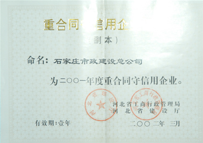 2001年重合同守信譽單位2